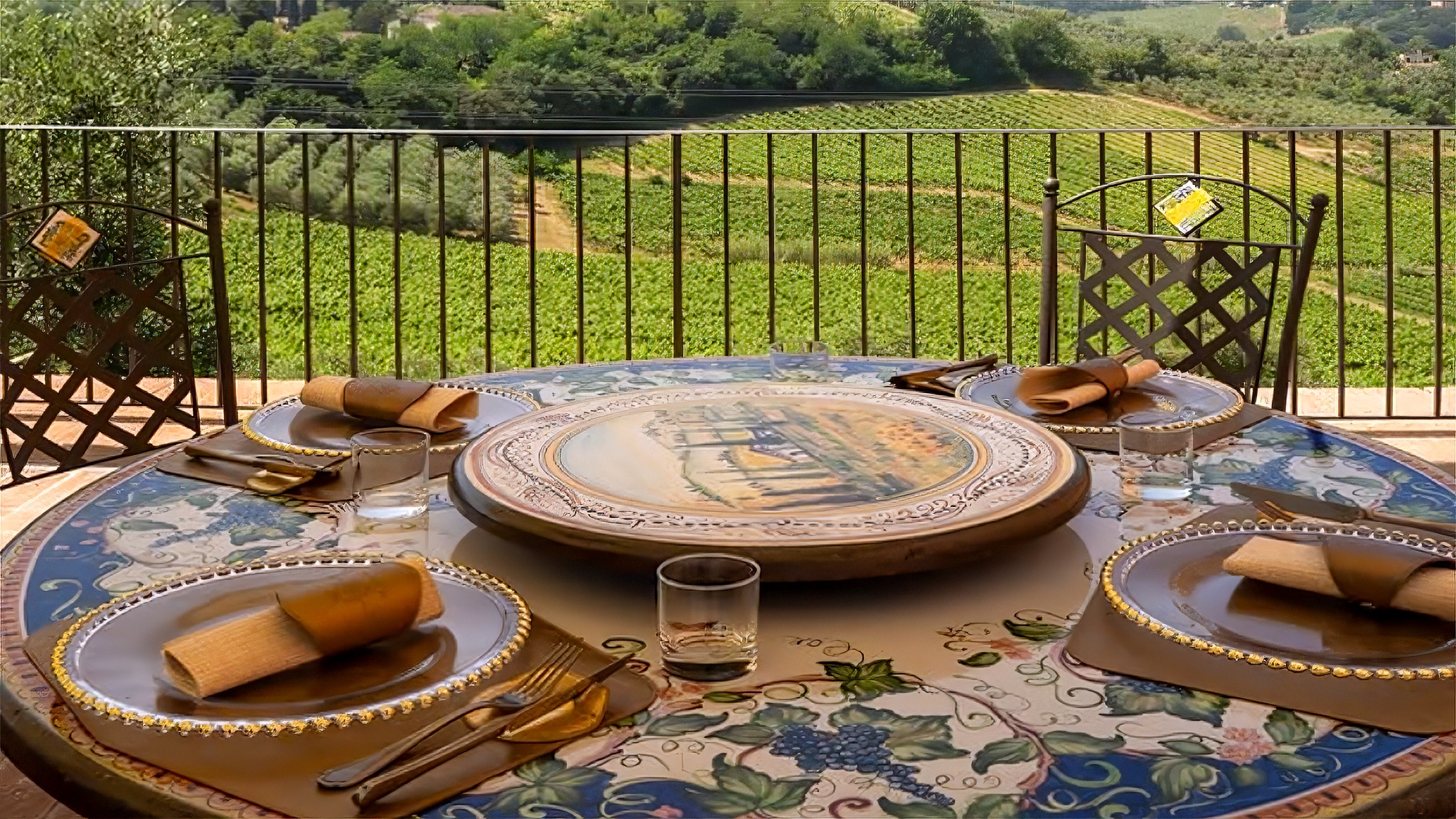 Con una vista che abbraccia l’intera campagna di San Gimignano, ogni sorso si trasforma in un momento di relax assoluto, perfetto a qualsiasi ora per rigenerarsi immersi in un’atmosfera unica.